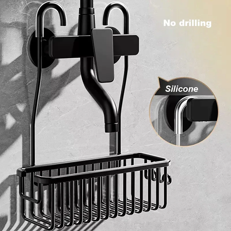 No Drilling Removable Shelf Aluminum Bath Basket Perforation
